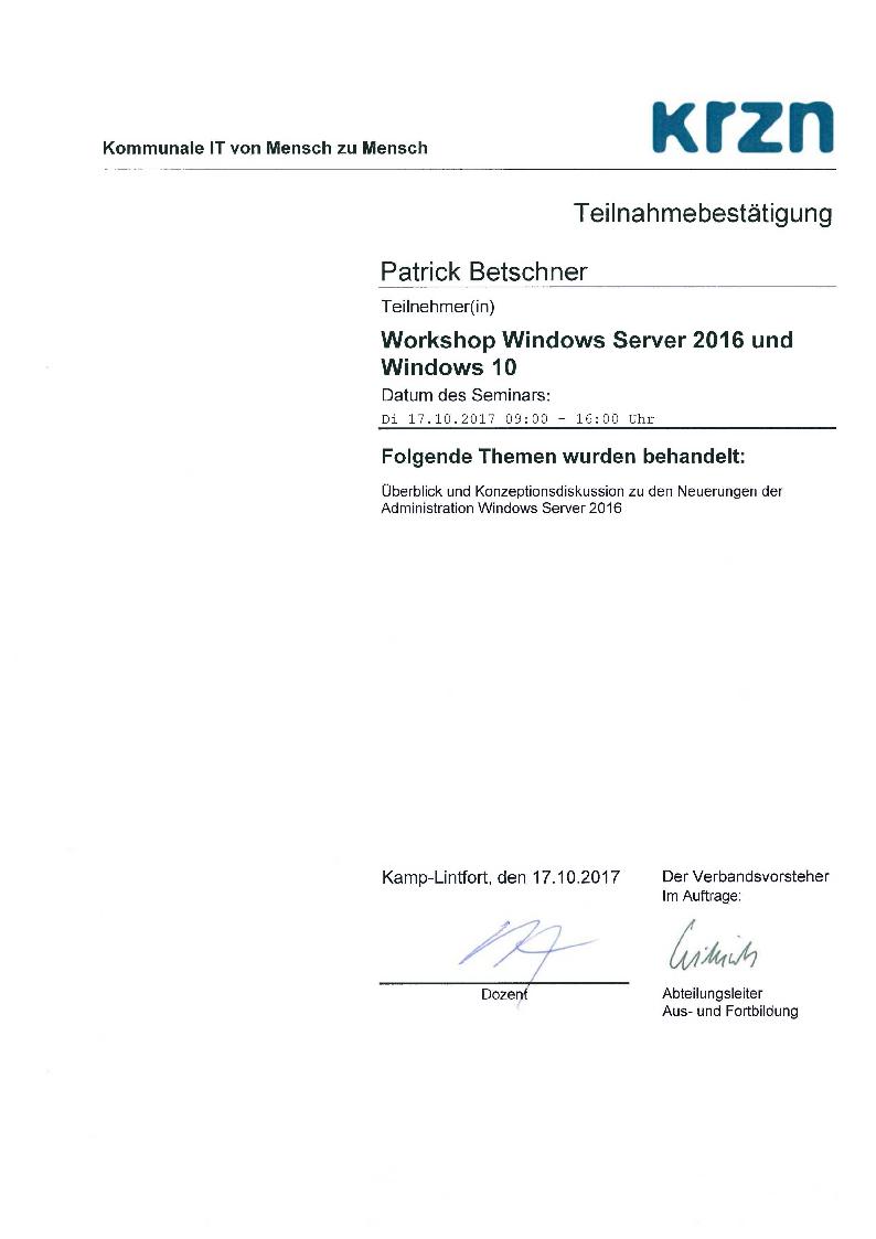 Workshop MS Server 2016 / Windows 10 (2/2)